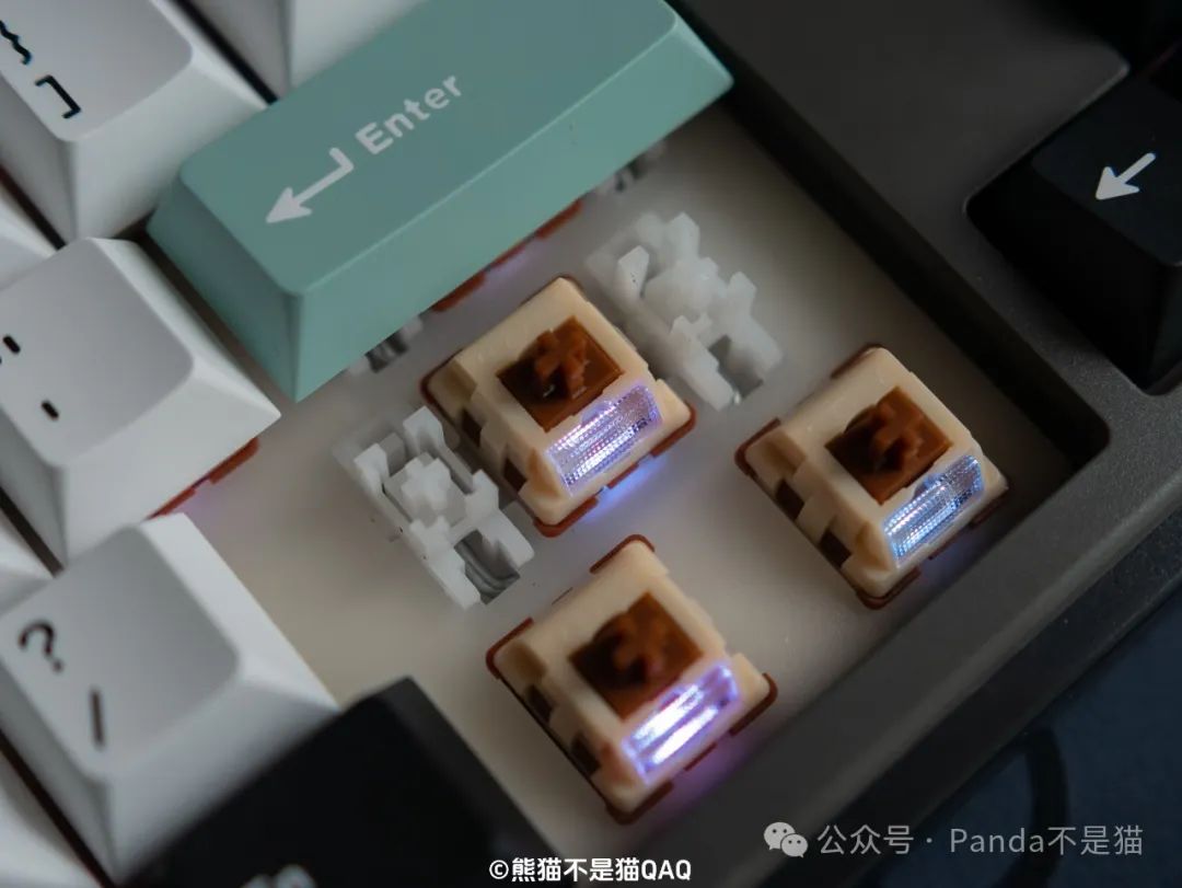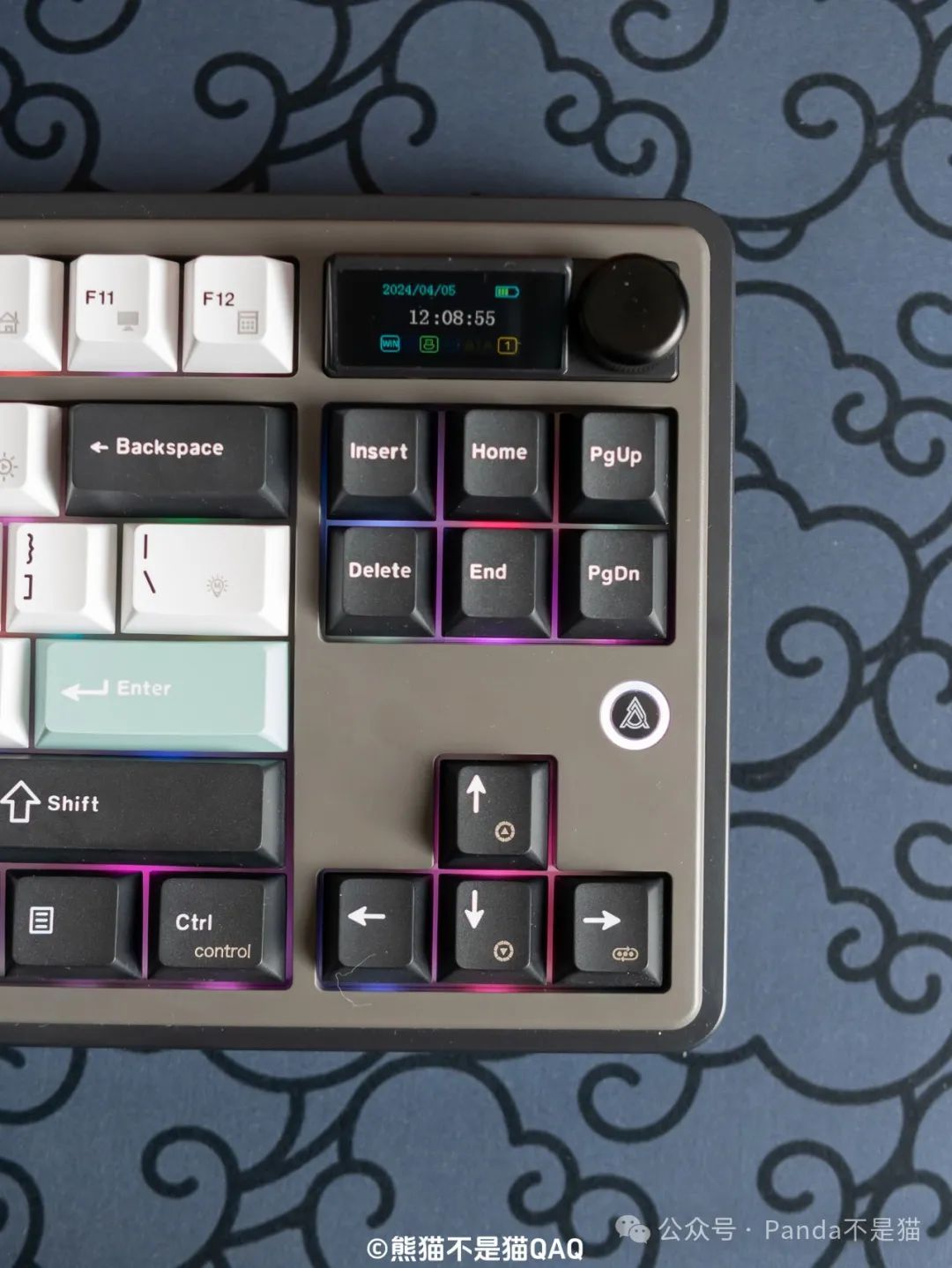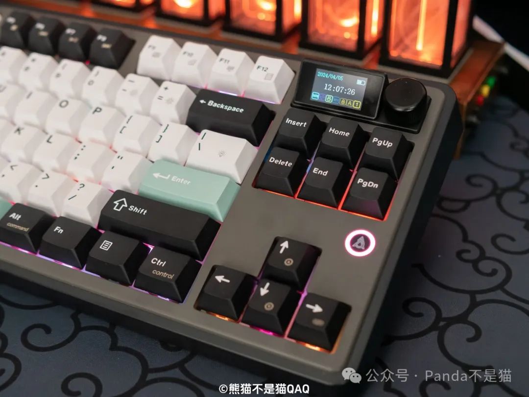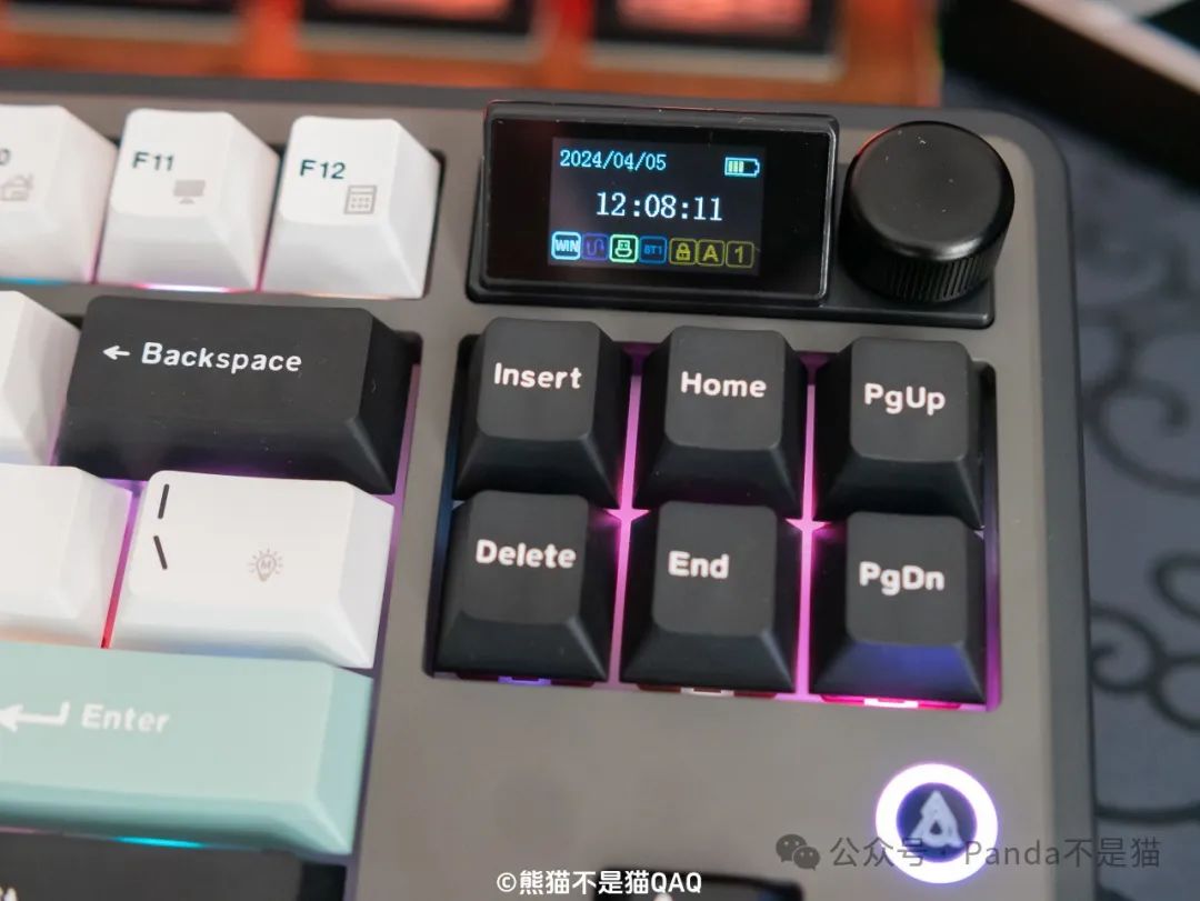 与屏幕模块互补的是键盘右侧的旋钮模块。旋钮触感良好,操控精准。除了配合FN键调节屏幕外,它还可以调节音量,大大提高了操作的便利性。值得一提的是,屏幕和旋钮可以通过插拔的方式更换为常规的转轴和键帽,如果不习惯或不喜欢也可以自行更换。